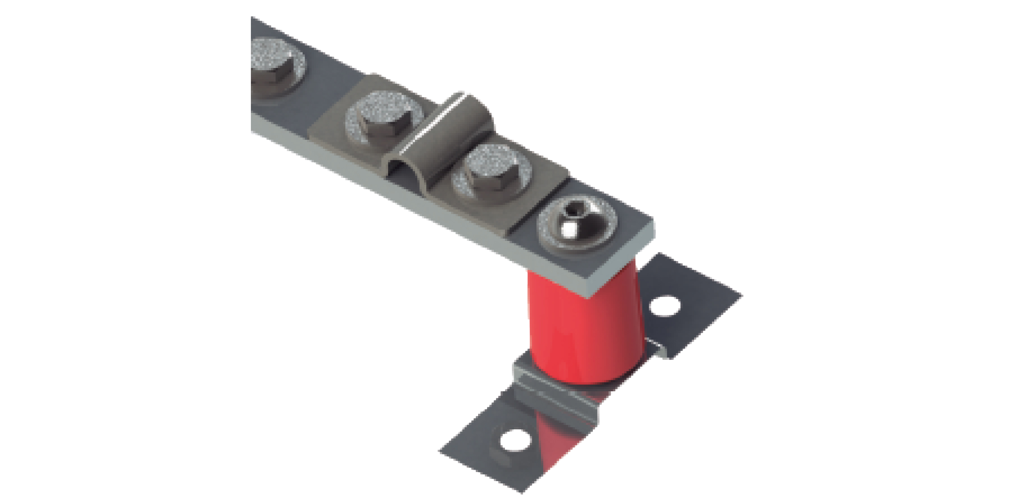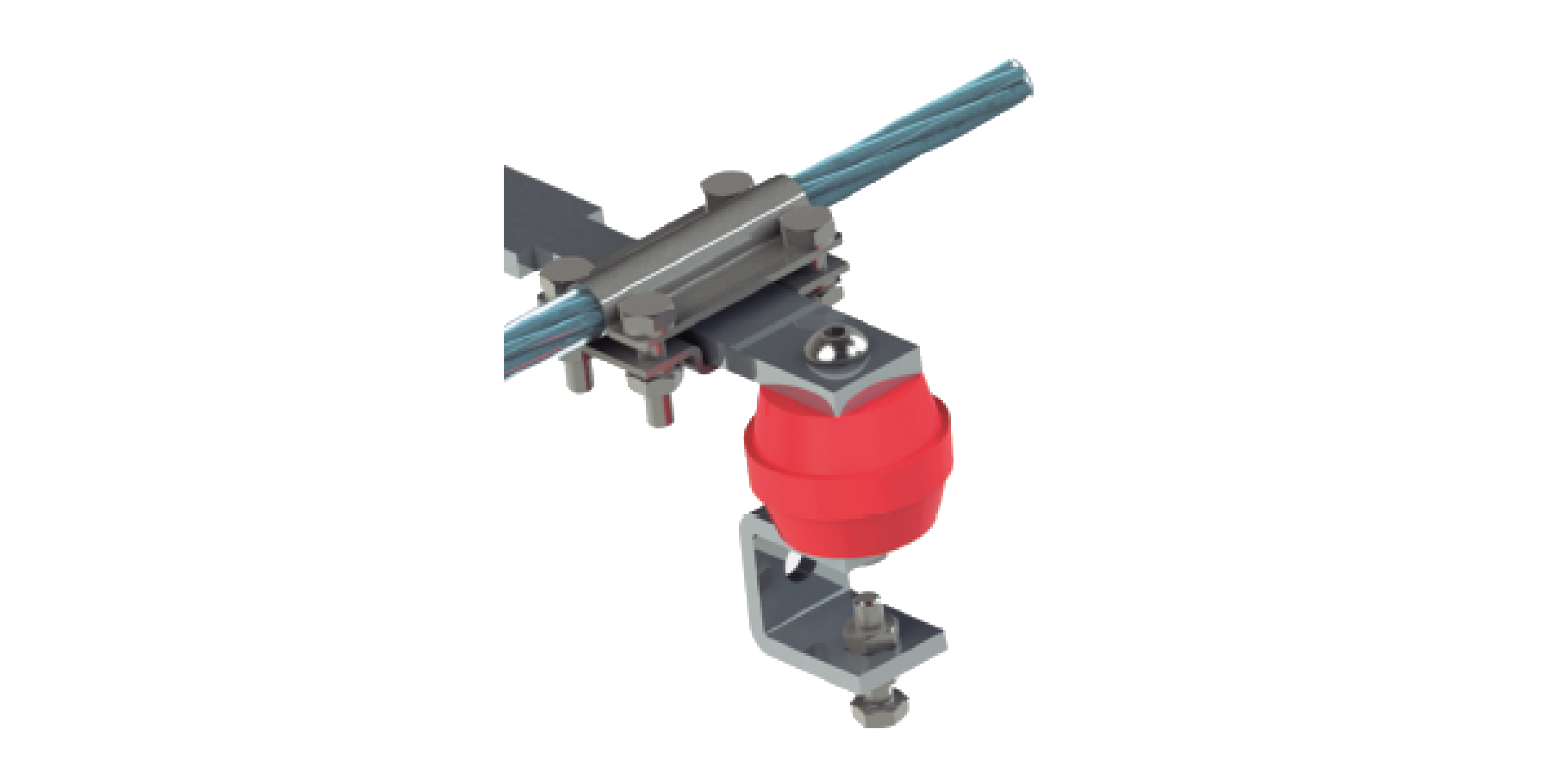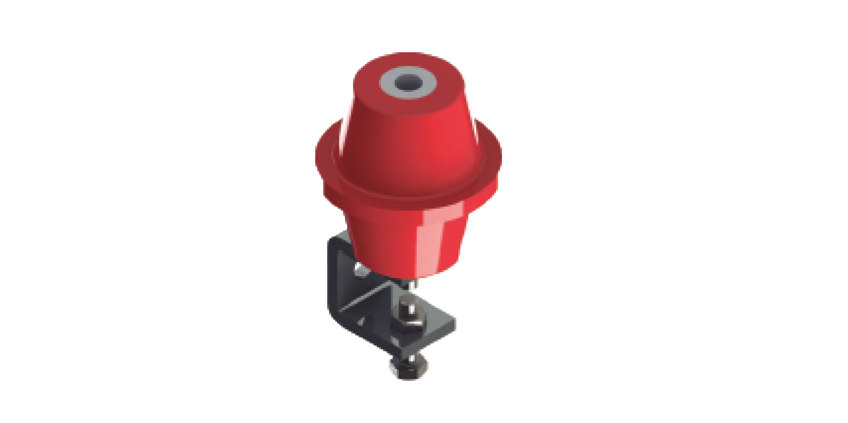 PARRES insulators are made of polyester resin reinforced with fiberglass in red color, with aluminum inserts on the top and bottom.